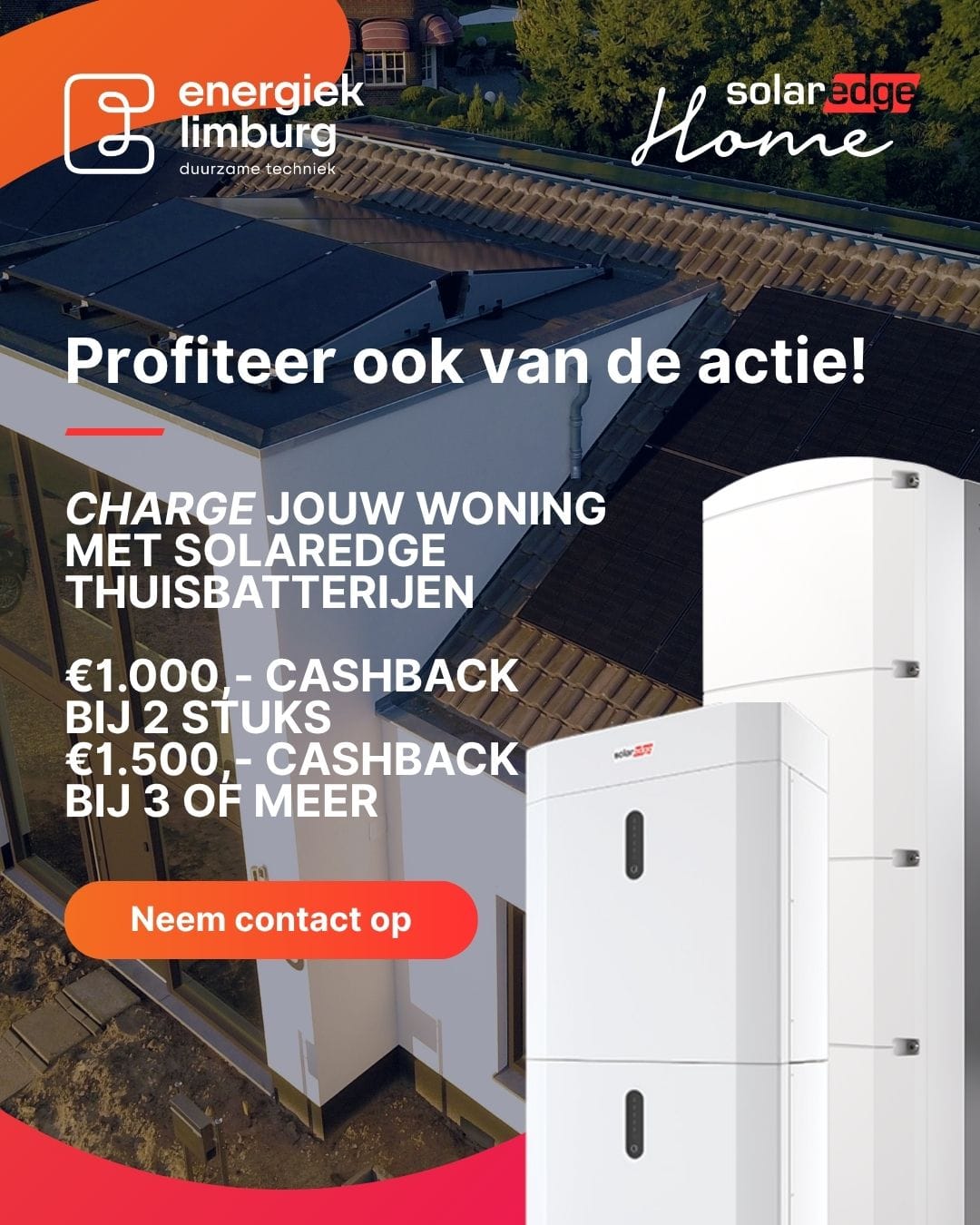 De actie is interessant voor wie al een SolarEdge installatie met 3-fase omvormer heeft, maar zonder hybride functie. In de vorm van de cashback krijg je een nieuwe hybride SolarEdge Home Hub omvormer. Ook interessant voor volledig nieuwe installaties.